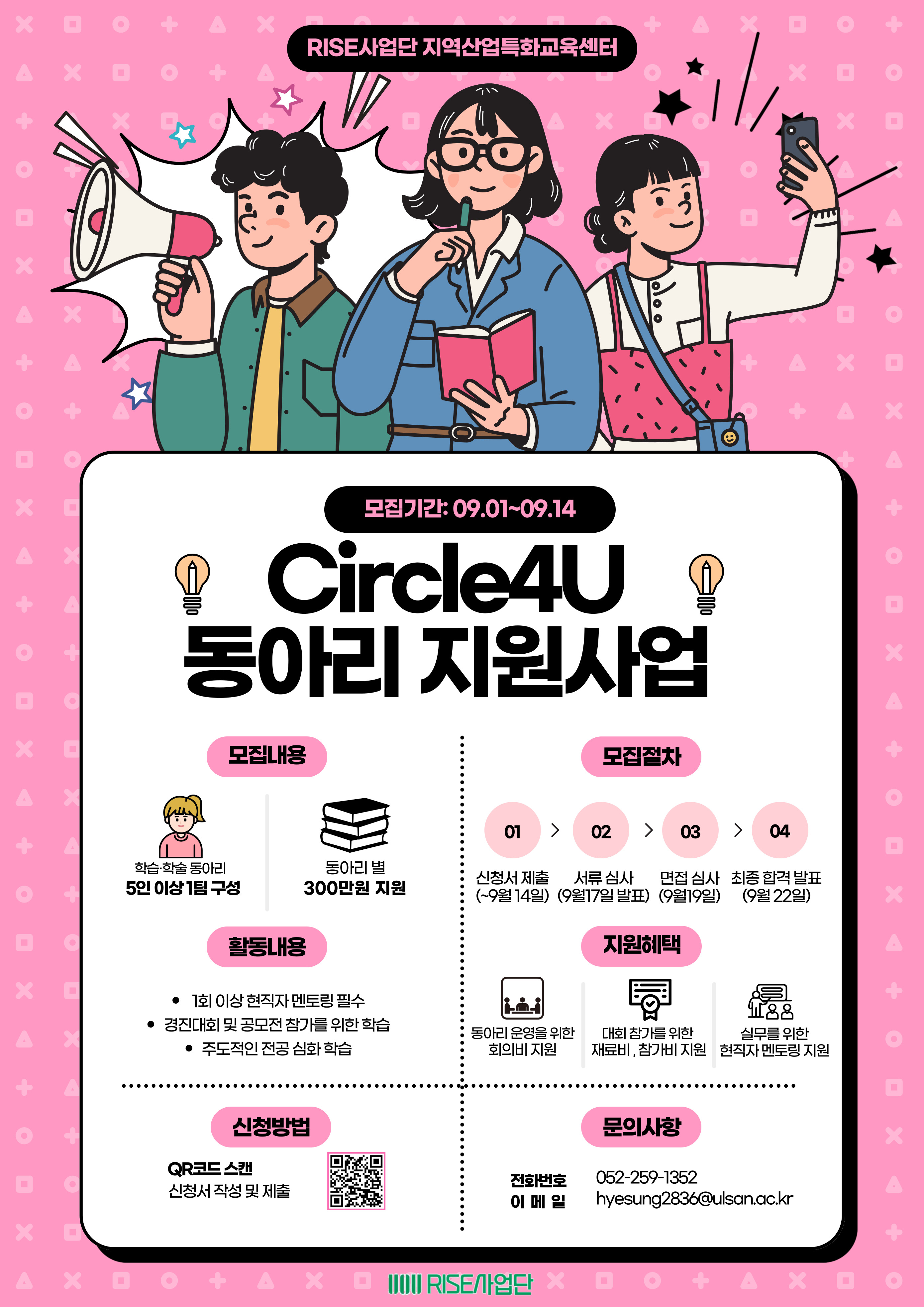 | [홍보] 2025학년도 RISE사업단 지역특화 인재양성 동아리 지원사업 Circle4U 모집 안내 | |||||||||||||||||||||||||||||||||||||||||||||
